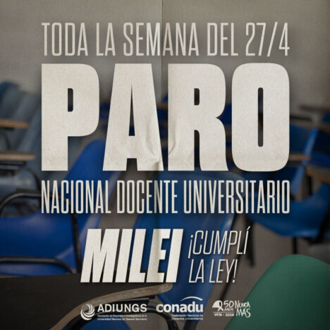 Compañeras y compañeros, lxs esperamos el miércoles a las 16hs en el Aula de ADIUNGS para evaluar el plan de lucha en la Asamblea de afiliadxs.