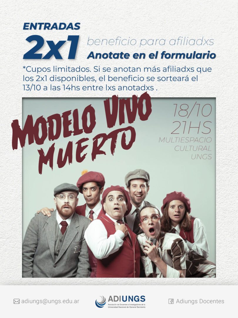 El 18/10 a las 21hs Blablá y compañía presentan la obra “Modelo vivo muerto” en el Multiespacio Cultural de la UNGS.