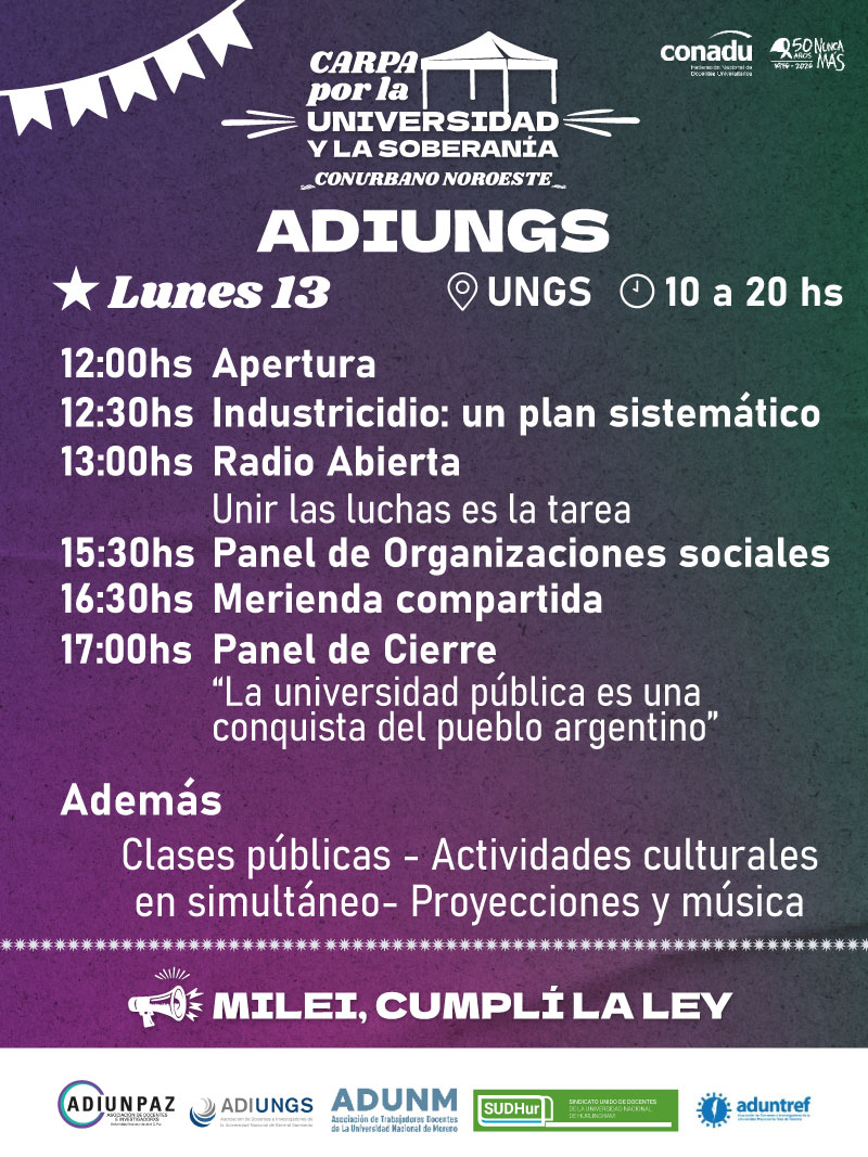 Para darle continuidad al plan de lucha, este lunes 13 abril realizaremos una carpa como punto de encuentro para defender la universidad pública y articular las luchas.