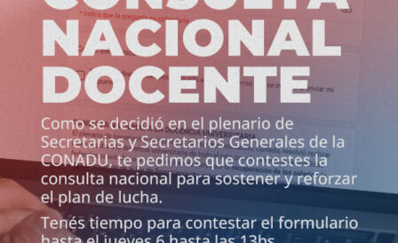 Como se decidió en el plenario de Secretarias y Secretarios Generales de la CONADU, te pedimos que contestes la consulta nacional para sostener y reforzar el plan de lucha. Tenés […]