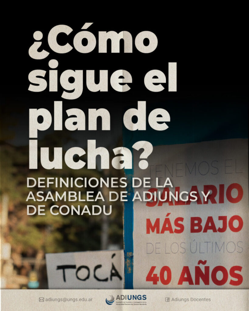 La asamblea se reunió el día martes para definir la continuidad de las medidas de fuerza. El mandato fue llevado a la CONADU, que definió coordinar los días de acción pero que cada asociación de base defina la modalidad (paro, clases públicas, jornada de protesta, etc).