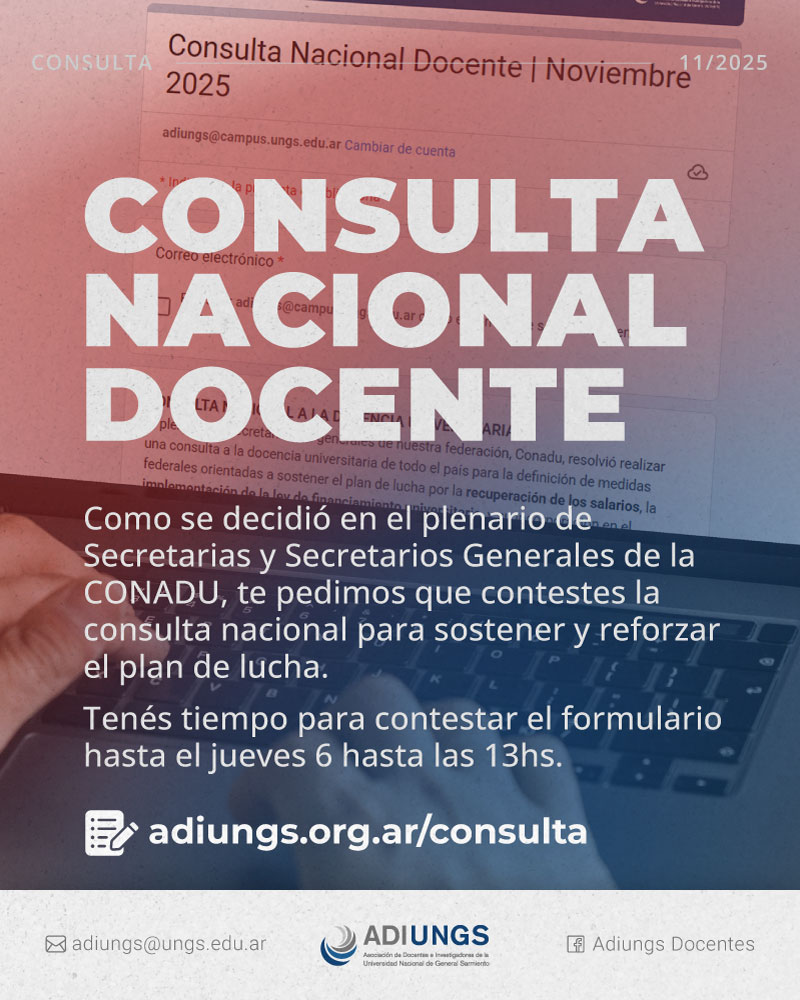 Como se decidió en el plenario de Secretarias y Secretarios Generales de la CONADU, te pedimos que contestes la consulta nacional para sostener y reforzar el plan de lucha.